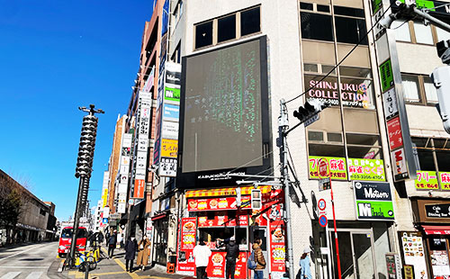 近年数が増えつつあるLEDビジョン。歌舞伎町の至る所に掲載しています。映像広告でインパクト大☆